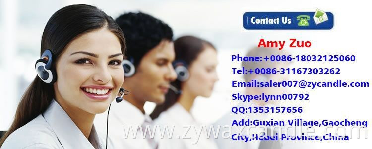 This is Amy from Shijiazhuang ZhongYa Candle Co,Ltd. we are professional manufacturer and exporter of White Candle 10-95g, Tea light candle10-14g , Spiral Candle 25g ,23g 3.8g . Taper candle7g for more then fifiteen years. also attend the Canton fair twice a year .